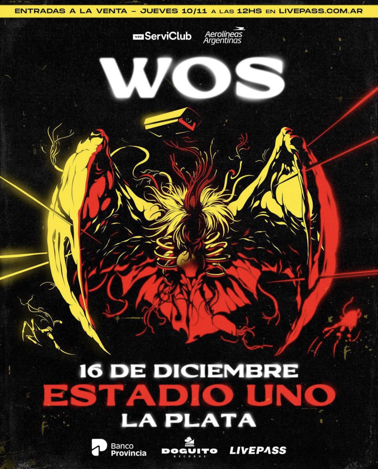 En el show en el estadio de Estudiantes de La Plata, Wos cerrará un año histórico para su carrera acompañado por su banda estable formada por Natasha Iurcovich (bajo), Facundo «Evlay» Yalve (guitarra), Fran Azorai (teclados) y Tomás Sainz (batería).