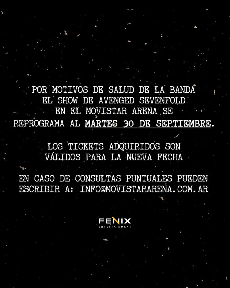 Los tickets adquiridos para el show sold out son válidos para la nueva fecha. Quienes no puedan concurrir el 30/9 tendrán tiempo hasta esta noche a las 21 para solicitar la devolución.