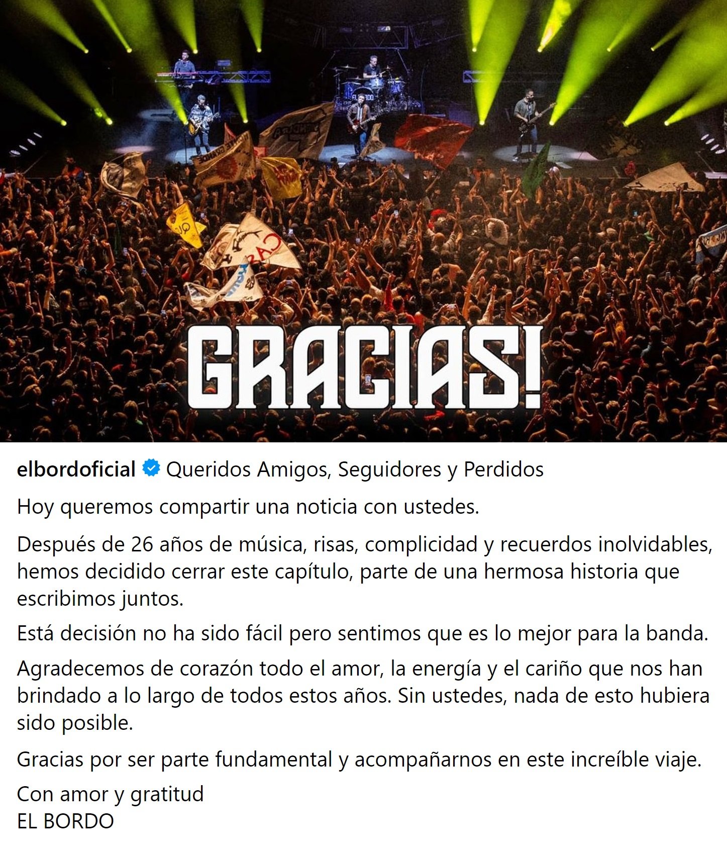 «Está decisión no ha sido fácil pero sentimos que es lo mejor para la banda. Agradecemos de corazón todo el amor, la energía y el cariño que nos han brindado a lo largo de todos estos años. Sin ustedes, nada de esto hubiera sido posible», sumaron.