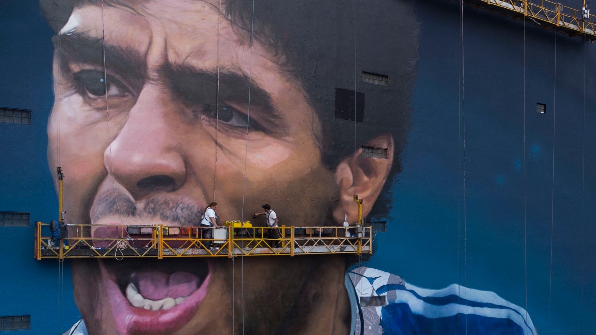 Así, en el día en que Diego hubiera cumplido 62 años, se presentará oficialmente la imagen pintada por el muralista Martín Ron en la medianera de un edificio de 12 pisos ubicado en San Juan y Solís, de 40 metros de ancho por 45 de alto, para el que YPF, impulsor de la obra, aportó los 800 litros de pintura necesarios.