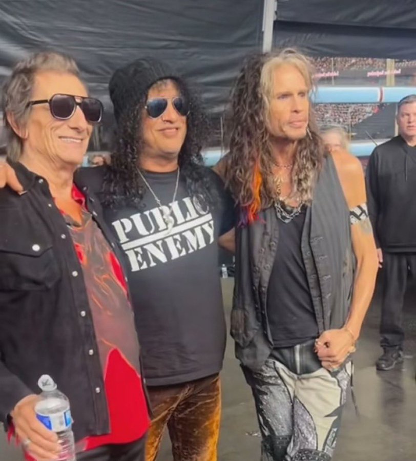 Ronnie Wood, Slash y Steven Tyler. Tres leyendas del rock.