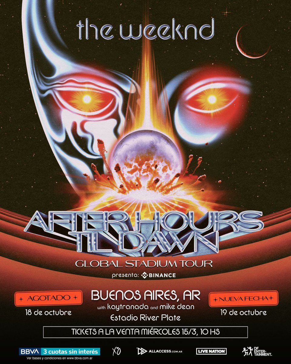 Tras agotar en apenas cinco días las localidades para su concierto del próximo 18 de octubre en el estadio de River Plate, el artista canadiense The Weeknd agregó una segunda fecha para el 19 de ese mismo mes.